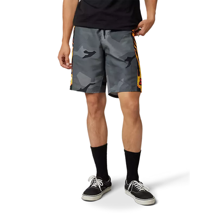 Introducing Fox Racing's Parkerboss 20" Boardshorts , bring the heat to the shore, pool, or boat with the Parkerboss Boardshorts. A classic camo print paired with flame energy means these boardie's are ready to make your style stance known. Featuring a comfortable, non-stretch fit, these distinctive boardshorts will turn heads wherever they - and you-go.