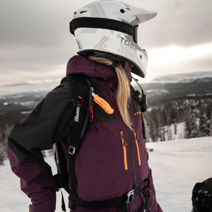 Introducing Tobe's Ekta V2 Limited Edition Monosuit. The TOBE Ekta V2 Limited Edition Monosuit is a classic, high-tech snowmobile suit crafted for women. Our selection of snowmobile and outerwear gear is mostly unisex, but this monosuit is tailored to female needs. The basic model is a shell-type design, available with insulation, and it boasts 45,000 mm of waterproof protection and reinforced Cordura® and Armotex Kevlar at areas of higher abrasion. For convenience, it features multiple pockets and ventilation, plus a padded drop seat for longer rides or all-day skiing.